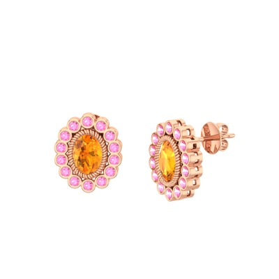 Sitrin ve pembe kuvars 925 ayar rose altın kaplama gümüş küpe