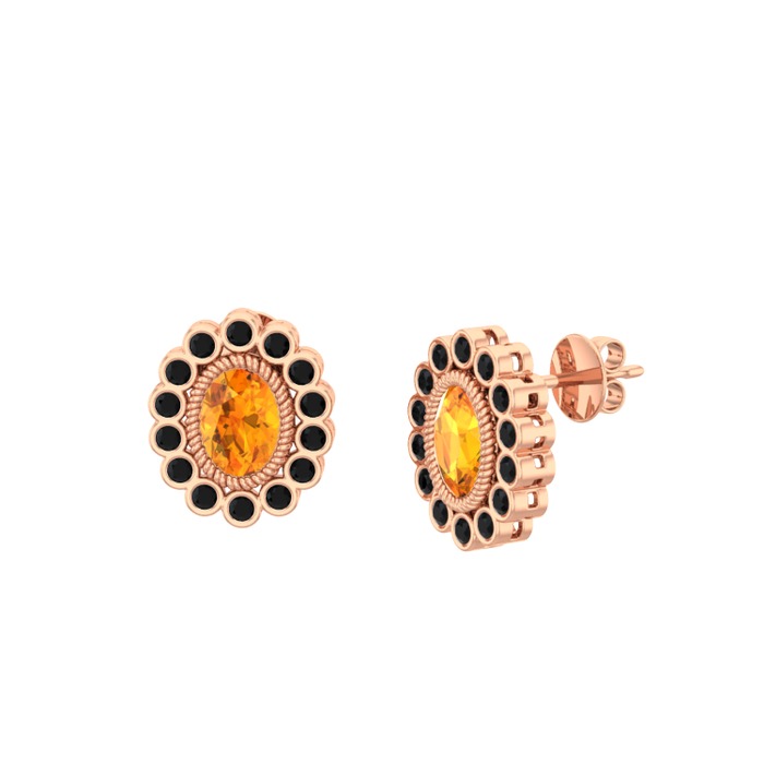 Sitrin ve siyah zirkon 14 ayar rose altın küpe