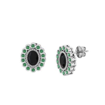 Siyah zirkon ve kök zümrüt 8 ayar beyaz altın küpe