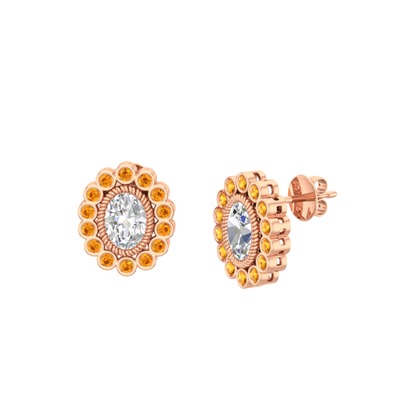 Swarovski ve sitrin 14 ayar rose altın küpe