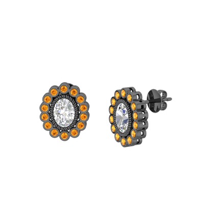 Swarovski ve sitrin 925 ayar siyah rodyum kaplama gümüş küpe