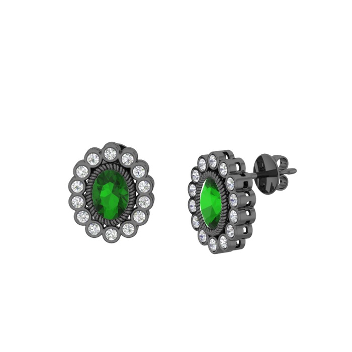 Yeşil kuvars ve beyaz zirkon 925 ayar siyah rodyum kaplama gümüş küpe