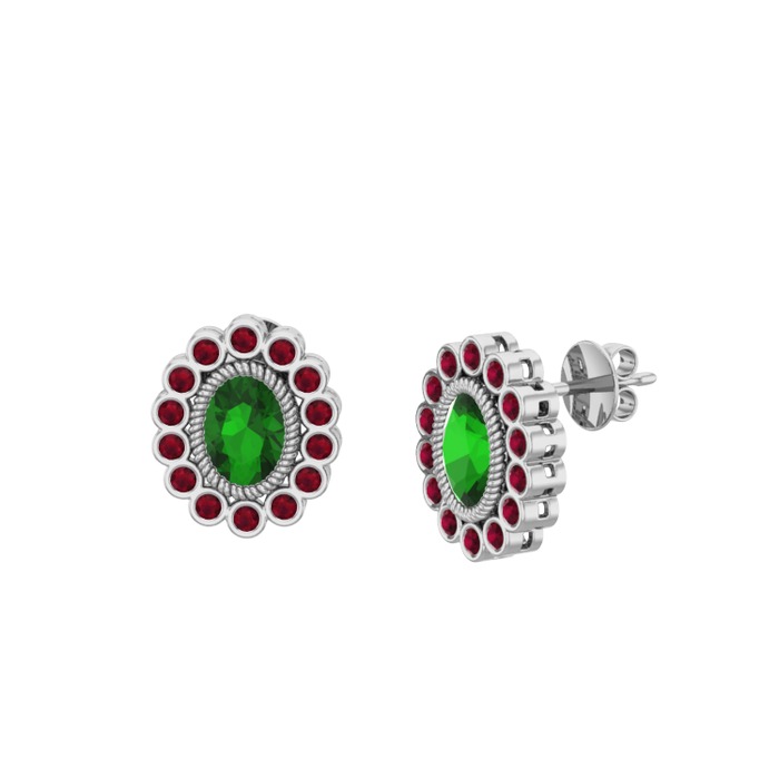 Yeşil kuvars ve kök yakut 8 ayar beyaz altın küpe