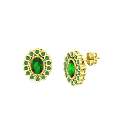 Yeşil kuvars ve kök zümrüt 18 ayar altın küpe