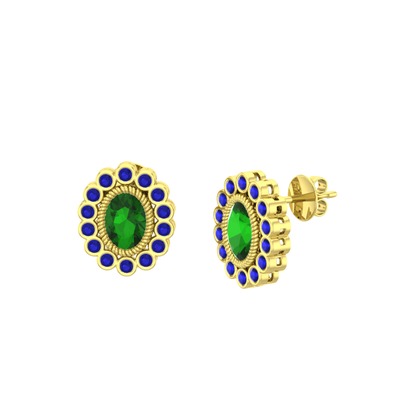 Yeşil kuvars ve lab safir 14 ayar altın küpe