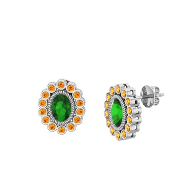 Yeşil kuvars ve sitrin 8 ayar beyaz altın küpe