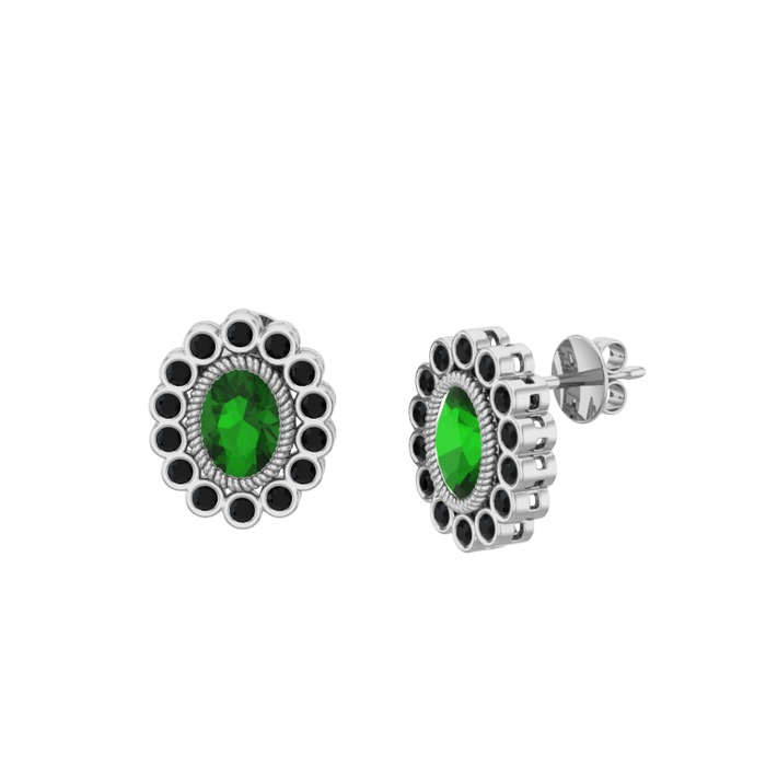Yeşil kuvars ve siyah zirkon 18 ayar beyaz altın küpe