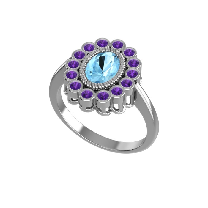 Akuamarin ve ametist 925 ayar gümüş yüzük
