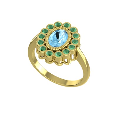 Akuamarin ve kök zümrüt 8 ayar altın yüzük