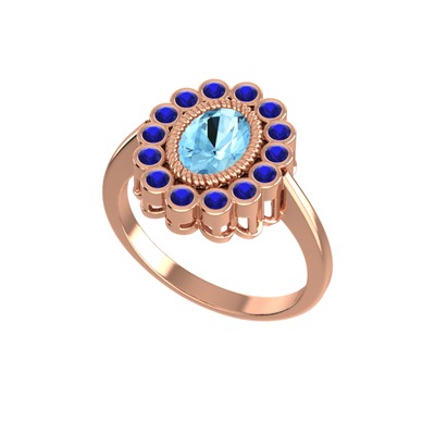 Akuamarin ve lab safir 14 ayar rose altın yüzük