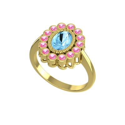 Akuamarin ve pembe kuvars 925 ayar altın kaplama gümüş yüzük