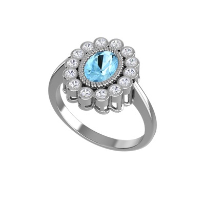 Akuamarin ve pırlanta 8 ayar beyaz altın yüzük (0.21 karat)