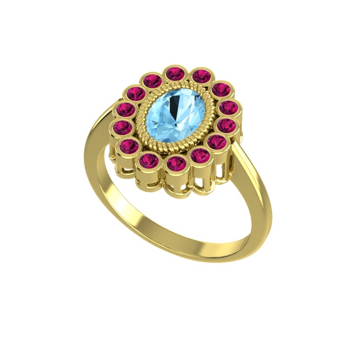 Akuamarin ve rodolit garnet 8 ayar altın yüzük