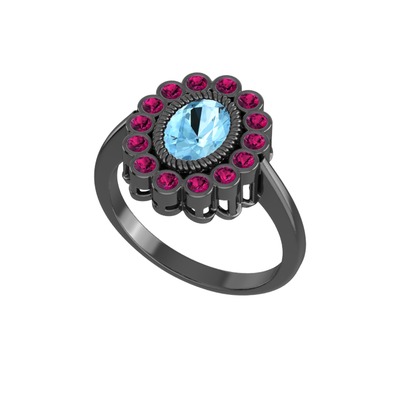Akuamarin ve rodolit garnet 925 ayar siyah rodyum kaplama gümüş yüzük