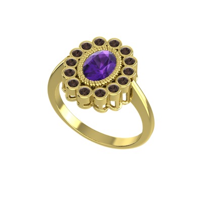 Ametist ve dumanlı kuvars 14 ayar altın yüzük