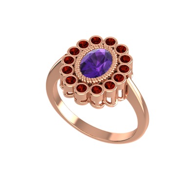 Ametist ve garnet 8 ayar rose altın yüzük