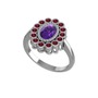 Ametist ve kök yakut 14 ayar beyaz altın yüzük