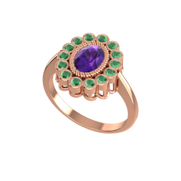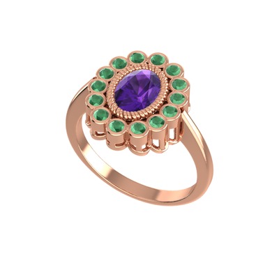 Ametist ve kök zümrüt 18 ayar rose altın yüzük
