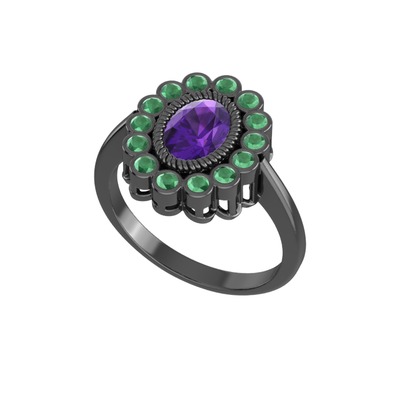 Ametist ve kök zümrüt 925 ayar siyah rodyum kaplama gümüş yüzük