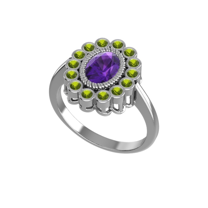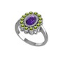 Ametist ve peridot 8 ayar beyaz altın yüzük