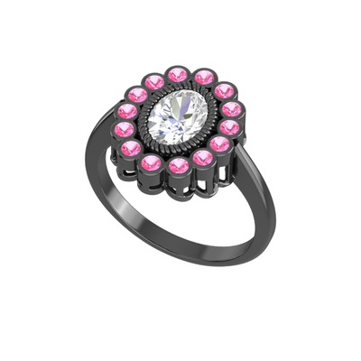 Beyaz zirkon ve pembe kuvars 925 ayar siyah rodyum kaplama gümüş yüzük