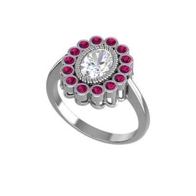 Beyaz zirkon ve rodolit garnet 925 ayar gümüş yüzük