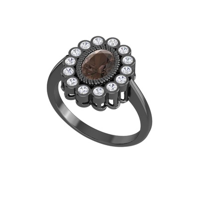 Dumanlı kuvars ve beyaz zirkon 925 ayar siyah rodyum kaplama gümüş yüzük