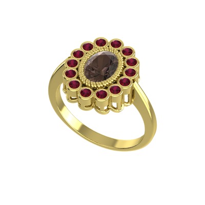 Dumanlı kuvars ve kök yakut 925 ayar altın kaplama gümüş yüzük