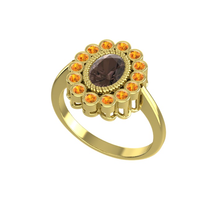 Dumanlı kuvars ve sitrin 925 ayar altın kaplama gümüş yüzük