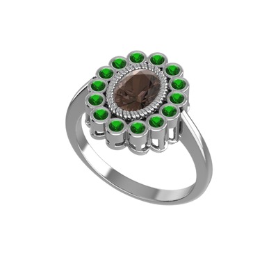 Dumanlı kuvars ve yeşil kuvars 925 ayar gümüş yüzük