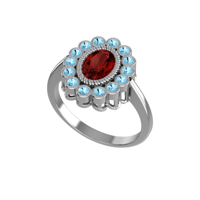 Garnet ve akuamarin 14 ayar beyaz altın yüzük