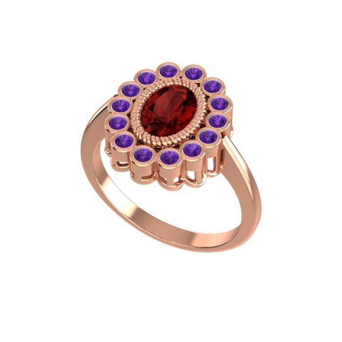 Garnet ve ametist 14 ayar rose altın yüzük