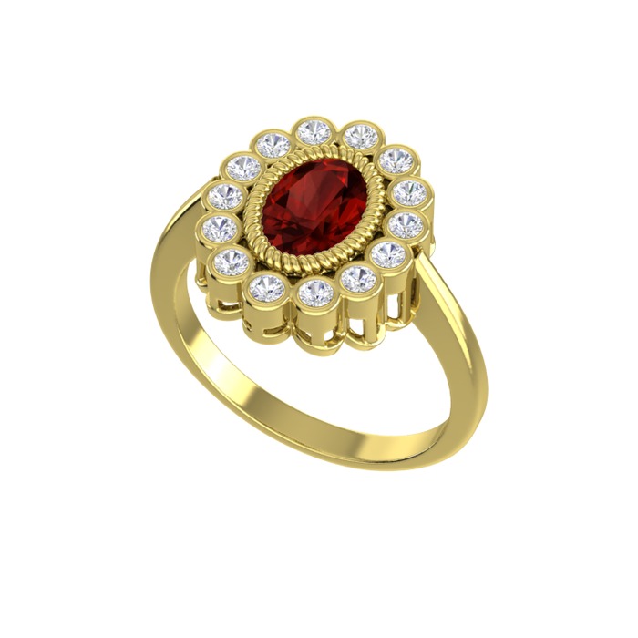 Garnet ve pırlanta 8 ayar altın yüzük (0.21 karat)
