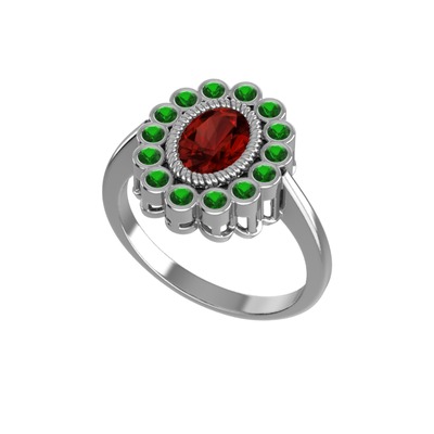 Garnet ve yeşil kuvars 925 ayar gümüş yüzük