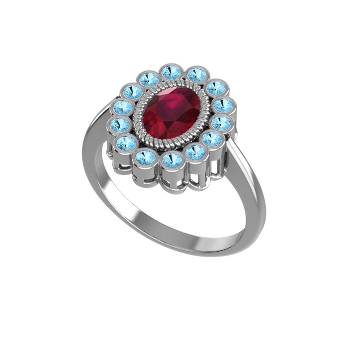 Kök yakut ve akuamarin 18 ayar beyaz altın yüzük