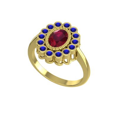 Kök yakut ve lab safir 925 ayar altın kaplama gümüş yüzük