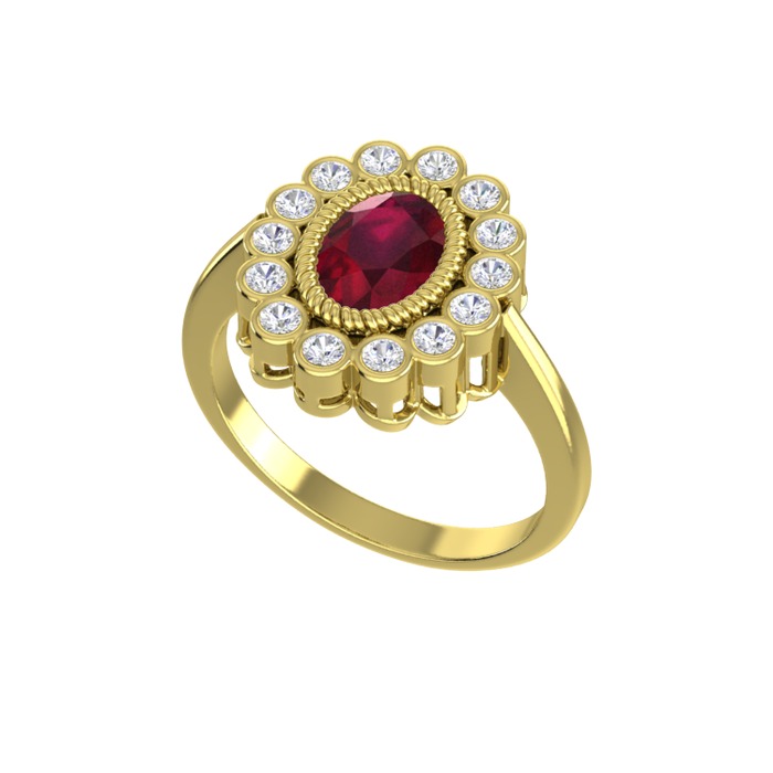 Kök yakut ve pırlanta 14 ayar altın yüzük (0.21 karat)
