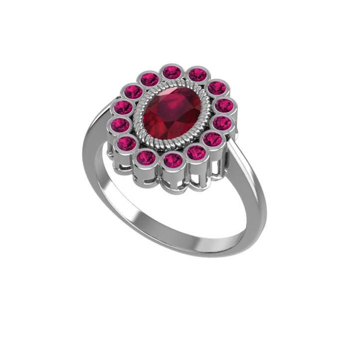 Kök yakut ve rodolit garnet 14 ayar beyaz altın yüzük
