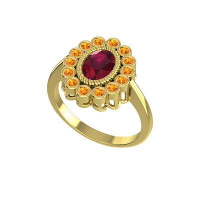 Kök yakut ve sitrin 18 ayar altın yüzük