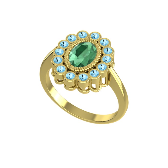 Kök zümrüt ve akuamarin 14 ayar altın yüzük