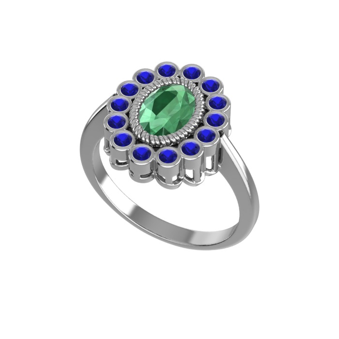 Kök zümrüt ve lab safir 925 ayar gümüş yüzük