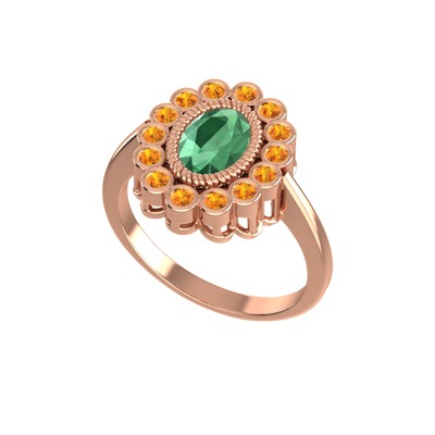 Kök zümrüt ve sitrin 925 ayar rose altın kaplama gümüş yüzük