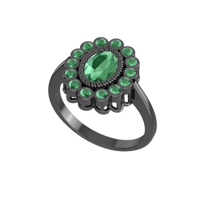 Kök zümrüt 925 ayar siyah rodyum kaplama gümüş yüzük