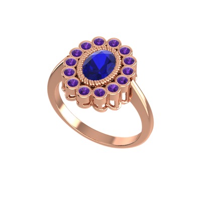 Lab safir ve ametist 925 ayar rose altın kaplama gümüş yüzük