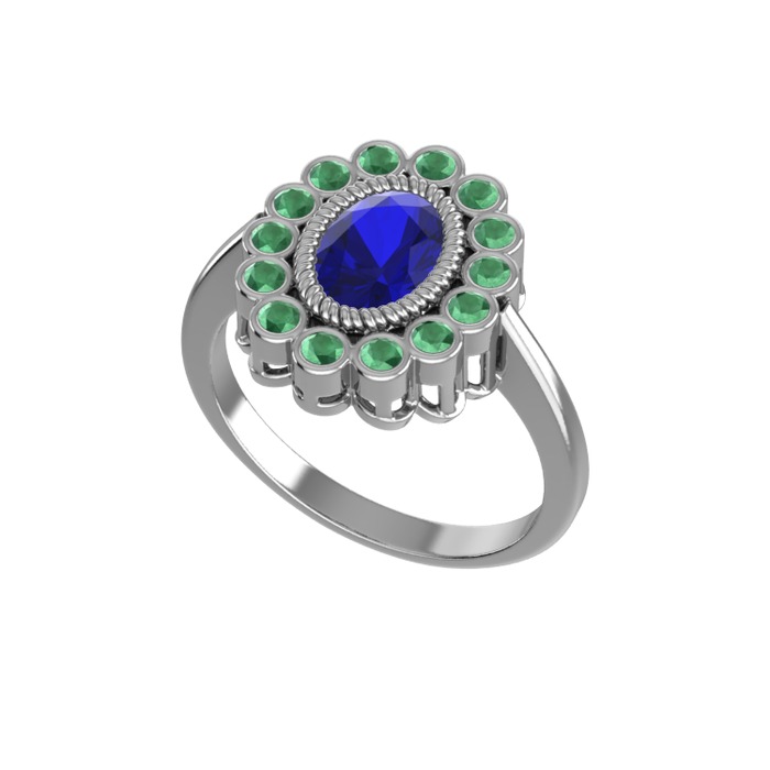 Lab safir ve kök zümrüt 14 ayar beyaz altın yüzük