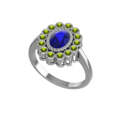 Lab safir ve peridot 18 ayar beyaz altın yüzük