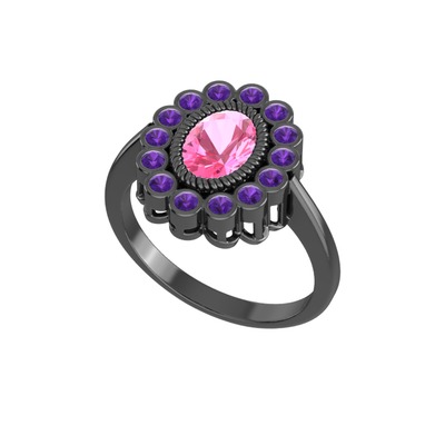 Pembe kuvars ve ametist 925 ayar siyah rodyum kaplama gümüş yüzük