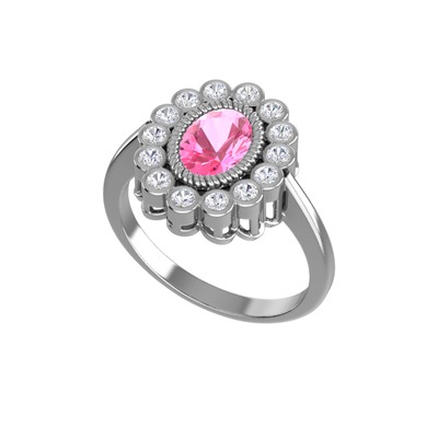 Pembe kuvars ve beyaz zirkon 18 ayar beyaz altın yüzük