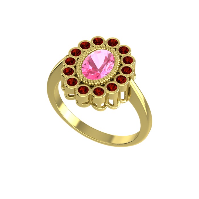 Pembe kuvars ve garnet 14 ayar altın yüzük