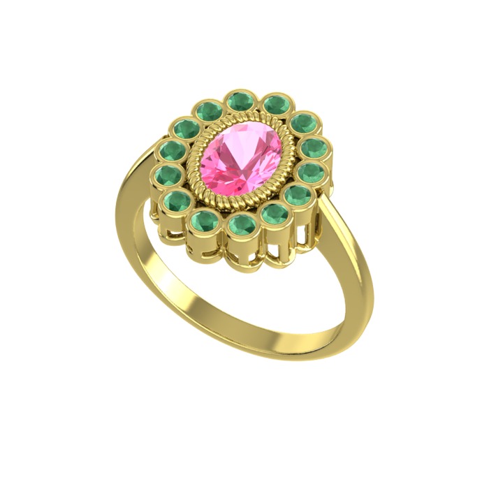 Pembe kuvars ve kök zümrüt 8 ayar altın yüzük